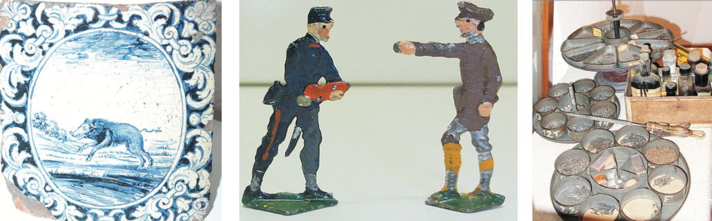 Eine dort vollständig aufgestellte Schuhmacherwerkstatt mit allen Nägelchen und Hämmerchen entzückt Erwachsene wie Kinder. Ebenfalls für Kinder übersichtlich sind die Modelle der Landwirtschaftsmaschinen – Pflüge, Eggen und Sämaschinen, einstmals Lehrstücke an der Landwirtschaftlichen Schule Brugg. Entzücken dürfte das Modell der Ölmühle Veltheim hervorrufen: alles bewegt sich angetrieben vom Mühlrad, das sich selbst im Museum mit dem Wasser dreht. Viele farbige Etiketten gibt es in der Traubensaftausstellung zu bewundern. Die Zinnsoldaten in Schlachtformation begeistern wohl wieder eher die Erwachsenen. Die Bilder auf den ausgestellten Ofenkacheln betrachten Jung und Alt gerne oder vertiefen sich gar in die Formen und Symmetrien der fossilen Stachelhäuter aus der weltweit einmaligen Heistersammlung.