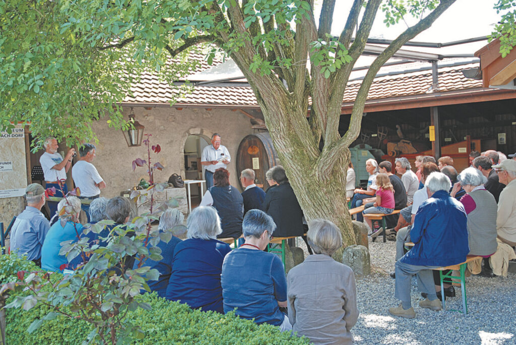Die Ausstellung zum das 50-Jahr- Jubiläum des Heimatmuseums neigt sich dem Ende zu, noch wartet ein kleiner Wettbewerb auf den glücklichen Gewinner, der sich allerdings in allen Räumen wird umsehen müssen: Landwirtschaftsmaschinen in Originalgrösse und in Miniaturform wären zu inspizieren, die Ausstellung zum Rebbau ‚Licht und Wärme’, das Kellergewölbe mit den fossilen Stachelhäutern aus dem Heistersteinbruch und die Galerie mit Gefängnistüre und Bilderschmuck aus der Kirche. Ruhigere Unterhaltung bietet hingegen der Film von Emil Hartmann über das frühere Dorfgeschehen, kompetent kommentiert von ihm selbst und dem Gemeindeschreiber Hansruedi Gysi.