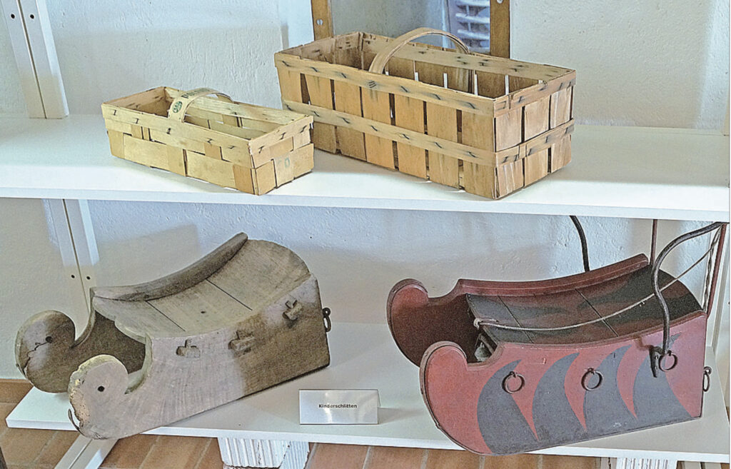 Kratten zum Transport von Gemüse und Obst – und Kinderschlitten sind im Museum zu sehen.