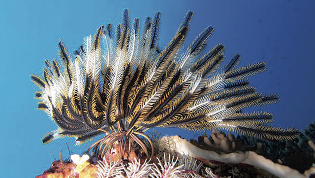 Da kleben wir Menschen nach den Ferien also wieder auf unseren Sesseln und unsere Kinder dazu und die ganz kleinen ganz neu obendrein. Wie die Haarsterne (Bild), die sich am Grunde unseres eigenen Stammbaumes befinden und immer noch im Meer leben, filtern auch wir uns Zugetragenes im Sitzen. Die Haarsterne gehören zu den Stachelhäutern wie die Seesterne und Seeigel , die Schlangensterne, Seelilien und Seegurken – die Namen sind irreführend, allesamt sind sie Tiere und schon lange in den Meeren dieser Welt. Vor 165 Millionen Jahren bevölkerten sie auch das warme Meer in der Gegend von Schinznach und sind darum heute – fossilisiert zwar – auch im hiesigen Museum zu sehen . Man fand sie alle vereint und in versteinerter Form im Heistersteinbruch, so wohlerhalten wie sonst nirgendwo auf dieser Welt. Lebende Haarsterne können allerdings ihren Untergrund auch loslassen und sich in einer galoppähnlichen Fortbewegungsweise eine neue Umgebung suchen – solch eifriger Zustrom wäre auch der liebevoll komponierten Spezial-Ausstellung im Heimatmuseum Schinznach-Dorf zu gönnen.