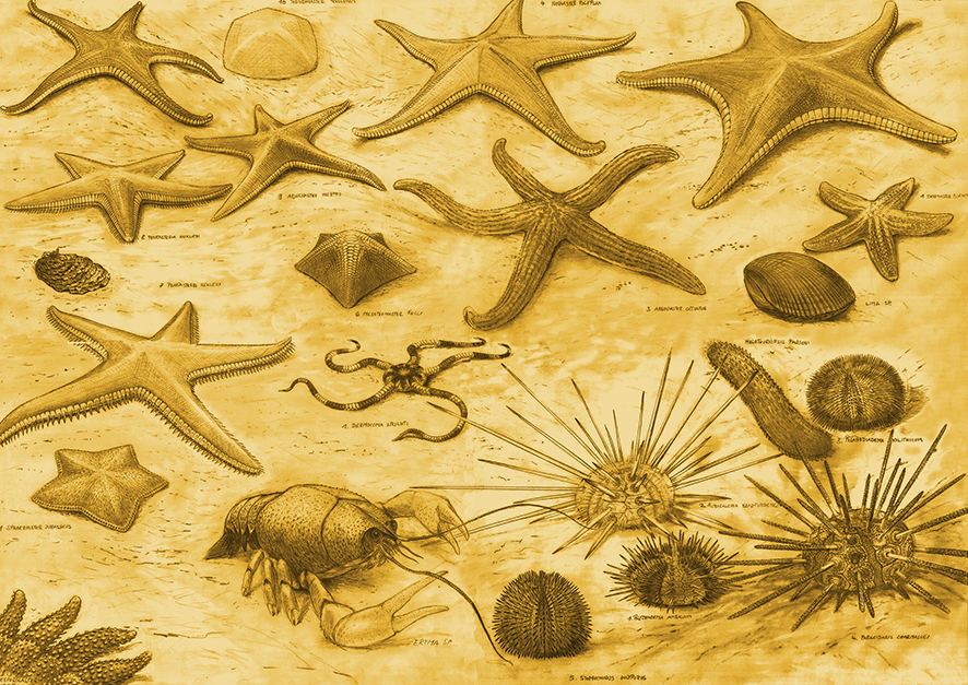 Die Heisterfunde sind weltweit einmalig. Die zarten Skelette von vielen  verschiedenen Seestern-, Seeigel- und Seelilienarten fossilisierten hier in grosser Zahl, auch etliche bisher unbekannte.
