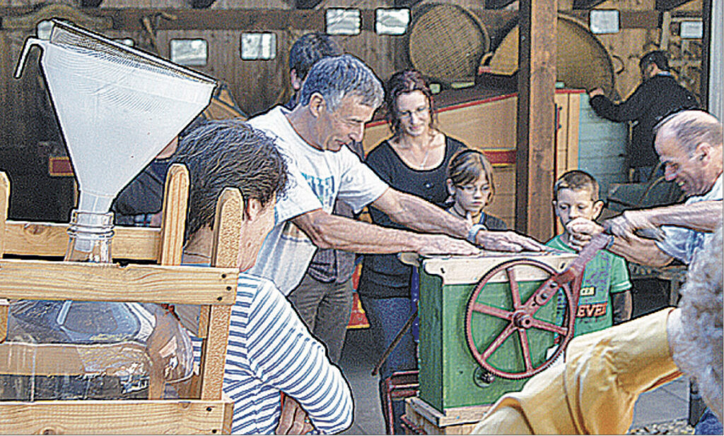 Um dann den Durst zu löschen, lockt der frisch gepresste Most, der ein paar Schritte weiter im stimmungsvollen Hof vom Heimatmuseum aus Äpfeln der Umgebung gewonnen wird. So manche Apfelsorten gibt es da zu testen, und auch hier können Kräfte beim eigenen Raffeln und Pressen der Früchte gemessen werden. Speck und Brot zum Most munden dann noch besser Im Innern des Museums aber, im Spycher aus dem Jahr 1647, sind viele grosse und kleine Gegenstände unter dem Motto «heben, tragen, ziehen, schieben» versammelt. Sie illustrieren eindrücklich, wie schon die Generationen vor uns versuchten, sich das Leben zu erleichtern: von der Wiege bis zur Bahre. Dann gewinnt die Ausstellung zum Rebbau gerade mit der Herbstzeit wieder an Aktualität. Noch ist auch die Ausstellung zu den «Ahnen» vom Chor Schenkenbergertal zu besichtigen. Sie wird bald der nächsten Vereinsausstellung Platz machen müssen.