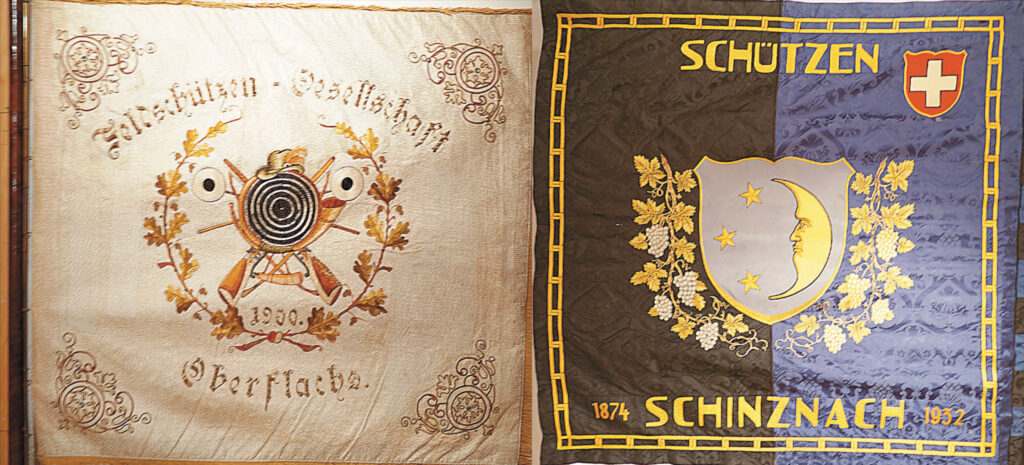 Die alten Fahnen der beiden Schützenvereine von Oberflachs und Schinznach gehören mit zu zahlreichen spannenden Ausstellungsstücken der Schiessvereine des Schenkenbergertals.