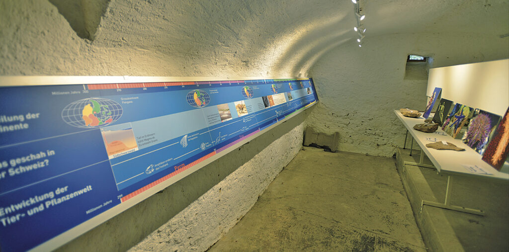 Die permanente Ausstellung zum Schenkenberger Rebbau nimmt immer noch einen ganzen Museumsteil in Anspruch und die Heisterfossilien besiedeln neu auch das benachbarte Kellergewölbe. Neozoen sind sie trotzdem nicht, sie sind schon seit 165 Millionen Jahre hier. Ihre Entwicklungsgeschichte lĂ€sst sich entlang einer eindrĂŒcklichen Zeittafel abschreiten.